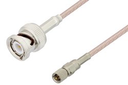 Our male 10-32 to male BNC cable assembly uses a flexible cable type that is 50 Ohm. Pasternack PE36542 10-32 male to BNC male cable assembly is constructed with RG316 coax and the maximum VSWR is 1.4:1.