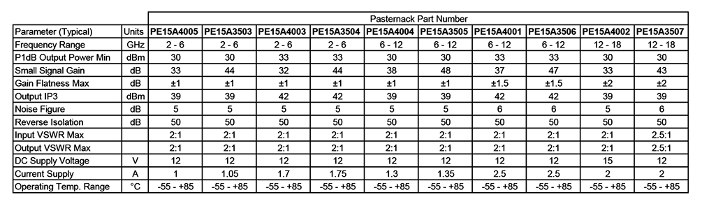 如需完整的Pasternack产品清单,请点击这里。