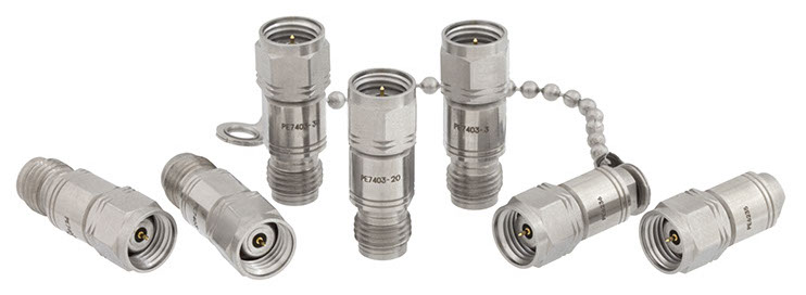 1.85mm连接器接口,也称“V型连接器®”,广泛用于卫星通讯(VSAT)设备、点对点无线电、WiGig应用以及毫米波雷达,该产品小巧紧凑、具有螺纹设计,能在高达65 GHz的极高频率下运行。1.85mm衰减器和1.85mm终端常用于射频测试系统和其它毫米波测试环境中的功率限制、阻抗匹配和信号调平等应用。