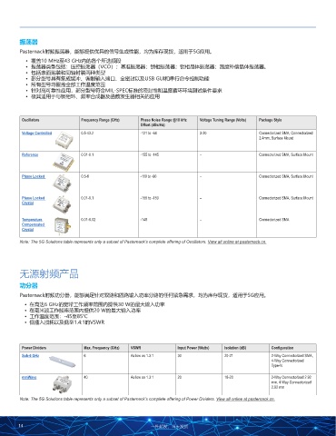 Note: The 5G Solutions table represents only a subset of Pasternack’s complete offering of Oscillators. View all online at pasternack.cn.