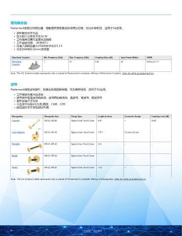 Note: The 5G Solutions table represents only a subset of Pasternack’s complete offering of Directional Couplers. View all online at pasternack.cn.
