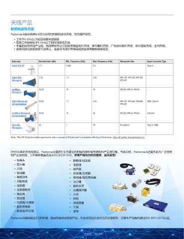 Note: The 5G Solutions table represents only a subset of Pasternack’s complete offering of Antennas. View all online at pasternack.cn.