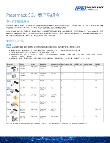 Note: The 5G Solutions table represents only a subset of Pasternack’s complete offering of Connectors. View all online at pasternack.cn.