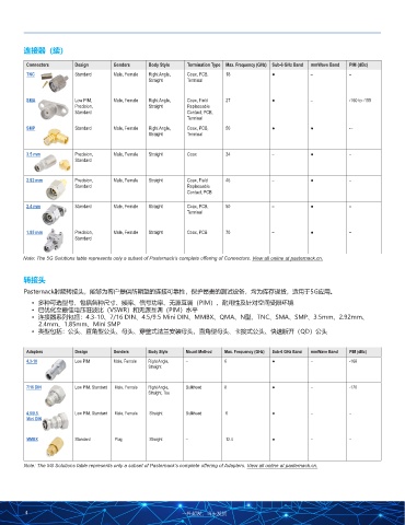 Note: The 5G Solutions table represents only a subset of Pasternack’s complete offering of Connectors. View all online at pasternack.cn.