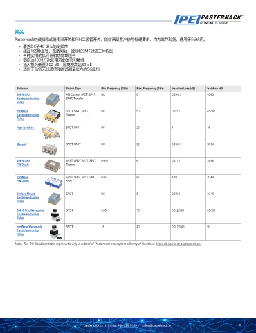 Note: The 5G Solutions table represents only a subset of Pasternack’s complete offering of Switches. View all online at pasternack.cn.