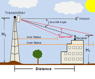 天线向下倾斜和覆盖计算器(又名天线倾角计算器)用于在已知发射天线大致向下角度情况下,将发射天线放置该角度以获得最佳信号强度和覆盖范围(单位为度)。在给定波束宽度的情况下,该天线倾角计算器还能计算出波束覆盖的内外半径。*此计算结果仅供参考,仅代表一阶近似。