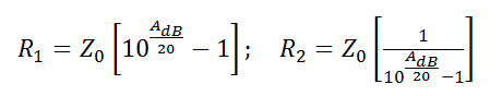 Pasternack 桥式三通衰减器计算器 也称为桥接- T) 用于确定桥式三通衰减器的电阻值(R1 和 R2)(单位为欧姆)。按CTRL + D 将本页收藏或加入书签。