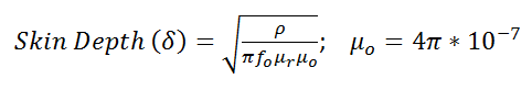 Pasternack 趋肤深度计算器 用于在材料电阻率和渗透率及应用频率已知情况下,返回趋肤深度的函数。您可以输入自定义值,也可从常用材料列表中进行选择。按 CTRL + D 将本页收藏或加入书签。